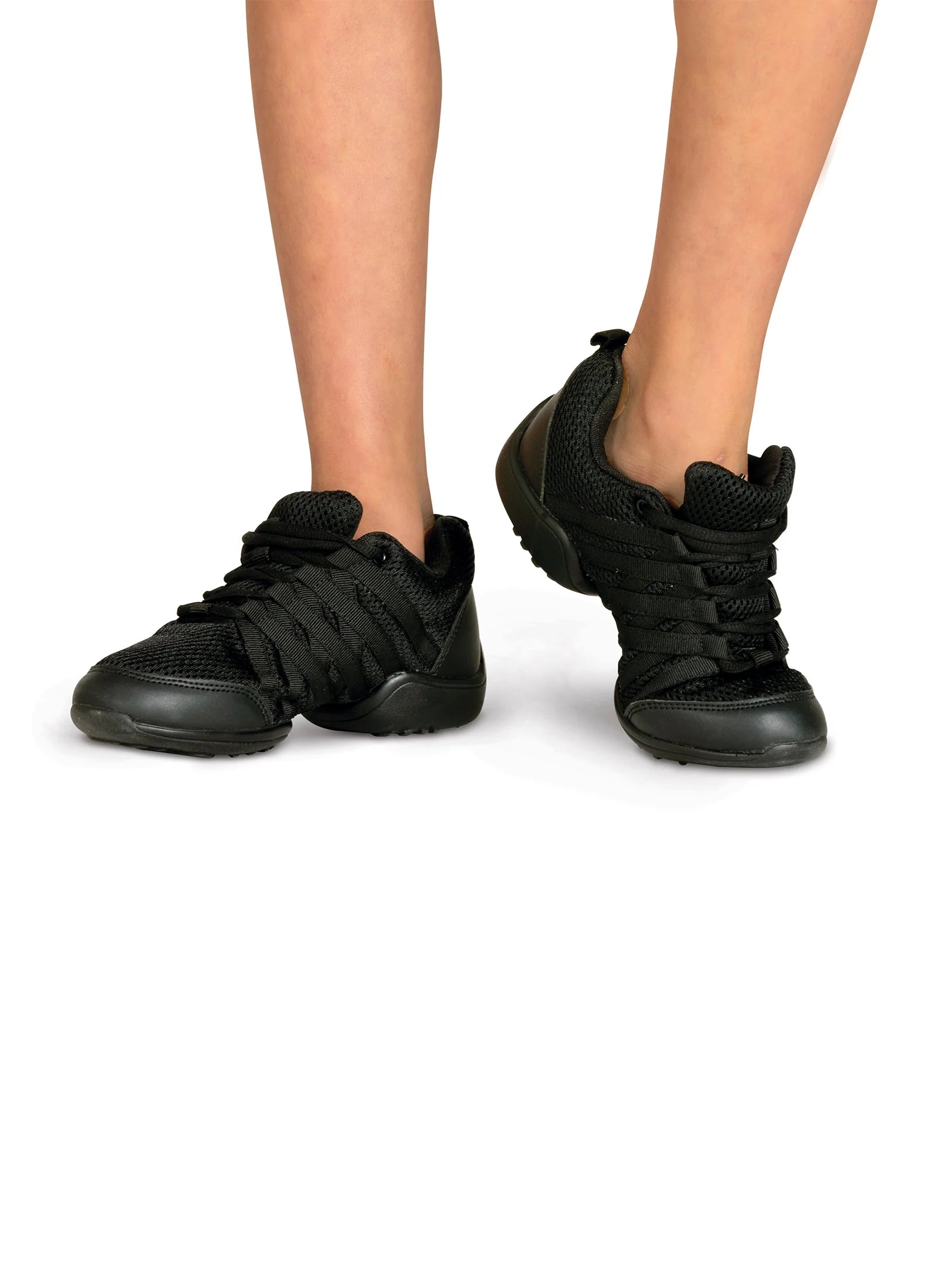 Introducing our Zoom III lighweight, split sole dance sneaker! The mesh upper makes the shoe breathable, lightweight and comfortable while the low profile design makes it sleek and trendy. Other features include a padded tongue, cushioned footbed that can be removed, and laces that allow you to adjust the fit of the sneaker. The non-marking split sole offers a spin circle for increased control.