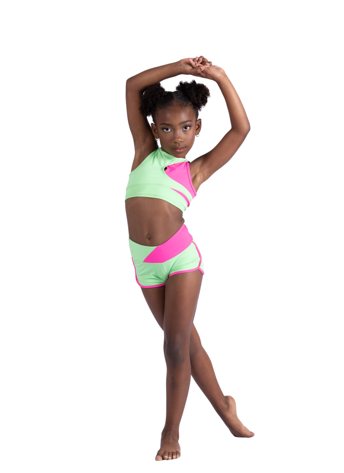 Two-tone tank top with mirror detailing at front and back, features small keyhole at chest. Fully front lined. Polyester/Spandex.