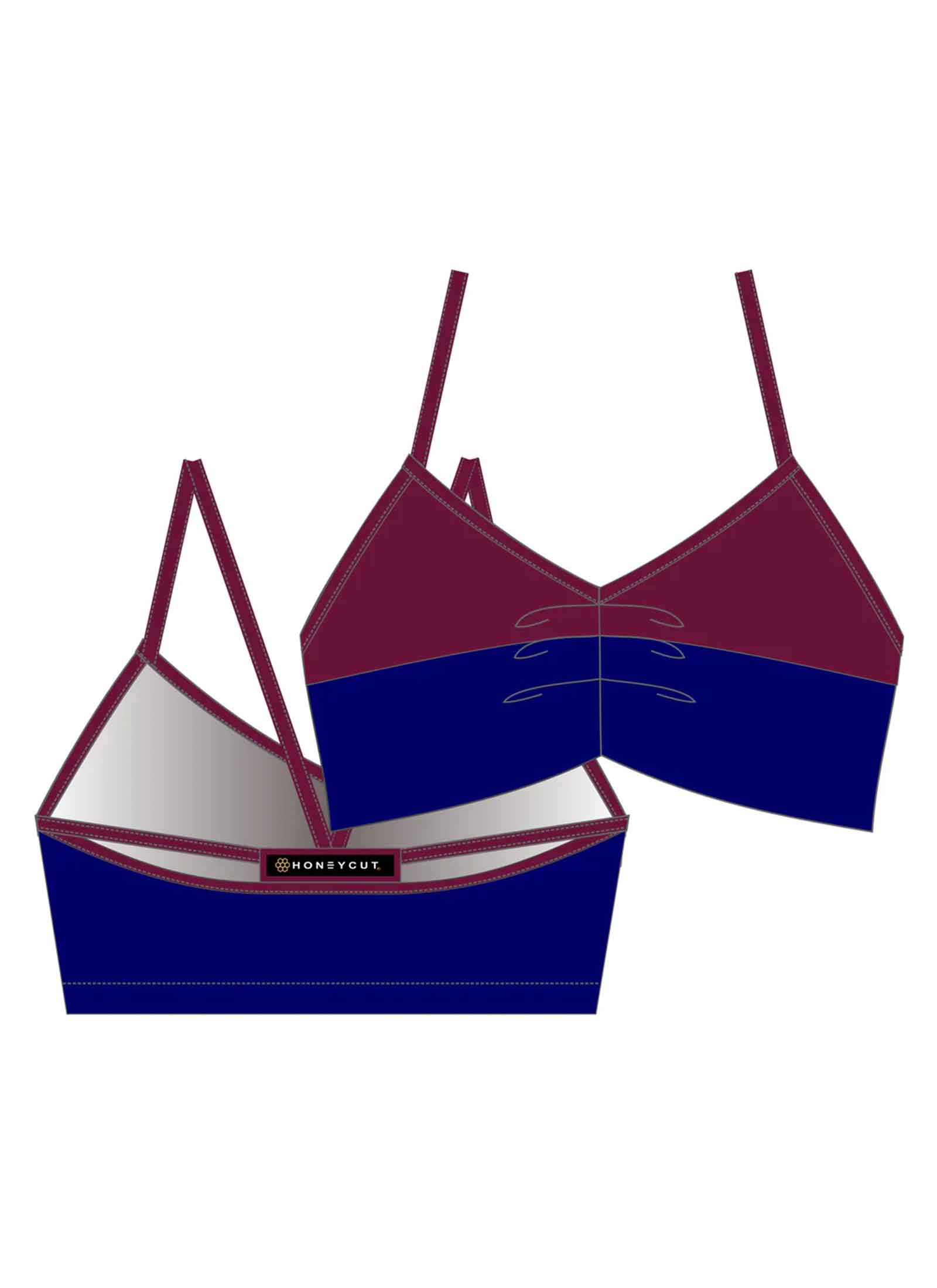 Our softest rib gives this two-toned top it’s shape and IT factor. This classic bra top fit features a 3 tuck front plus the new silicone label at the back strappy detail.