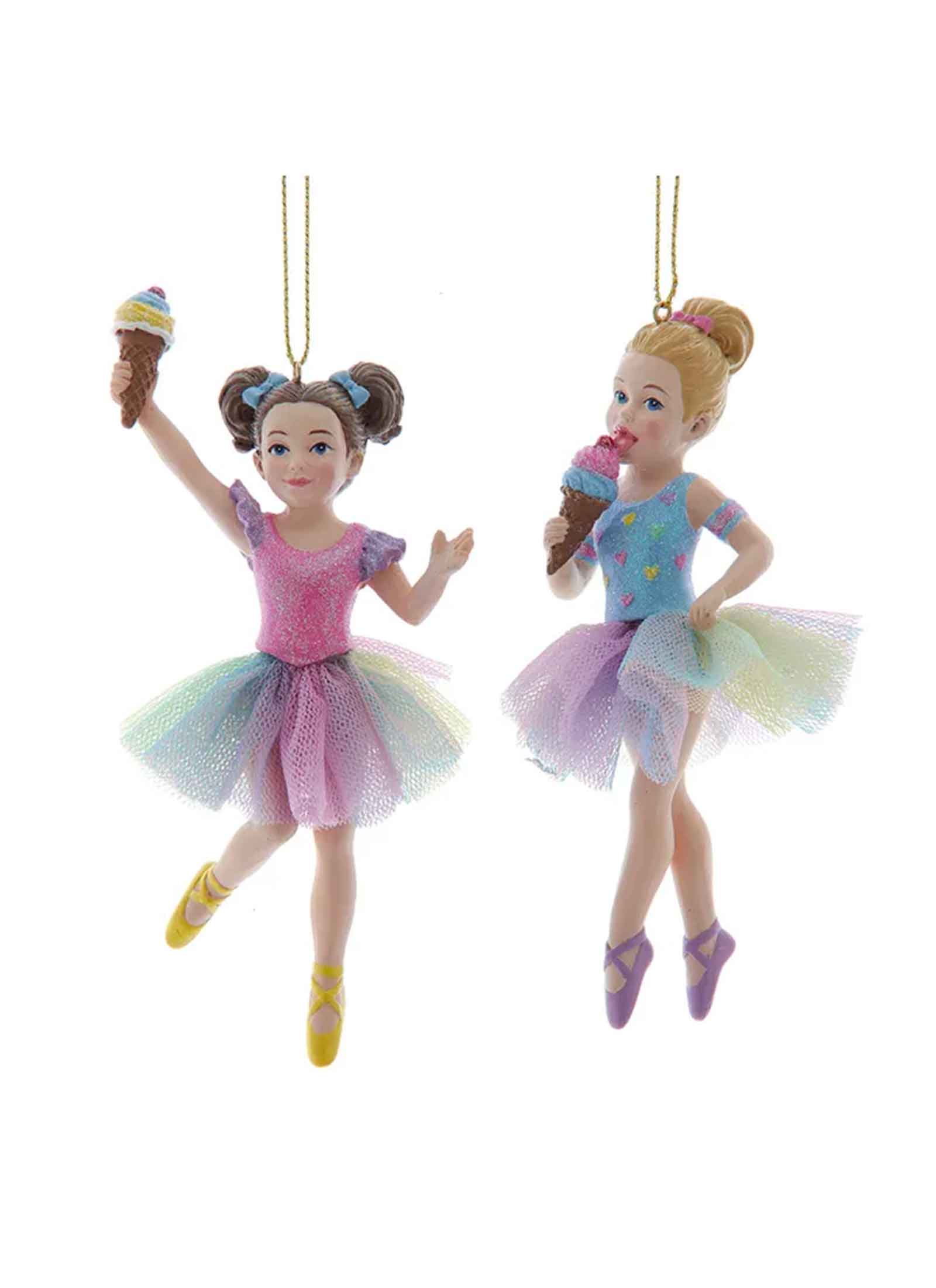 Delight in the sweetness of summer with Kurt Adler's charming Ice Cream Girl Ornaments! This delightful assortment features two ornaments, each beautifully designed to showcase a whimsical girl enjoying her favorite ice cream treat. With vibrant colors and intricate details, these ornaments capture the joy and fun of warm days and frozen delights, making them a perfect addition to your holiday decor. Crafted from high-quality materials, these lightweight ornaments are ideal for hanging on your Christmas tree, adorning garlands, or using as playful accents throughout your home. Their cheerful designs and lively colors make them suitable for enhancing any holiday theme, bringing a sense of nostalgia and joy to your celebrations.