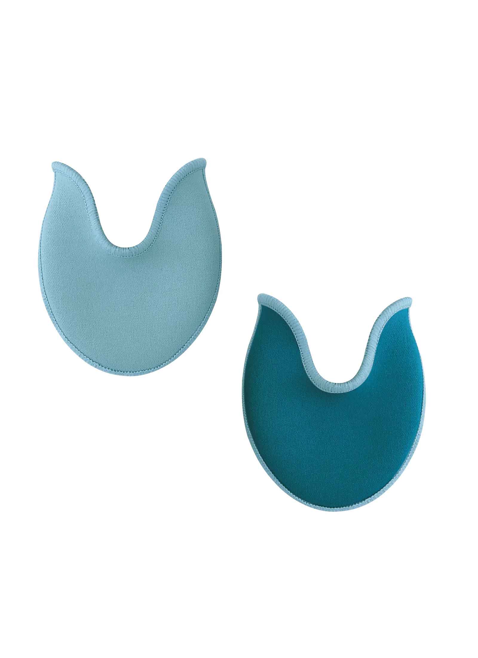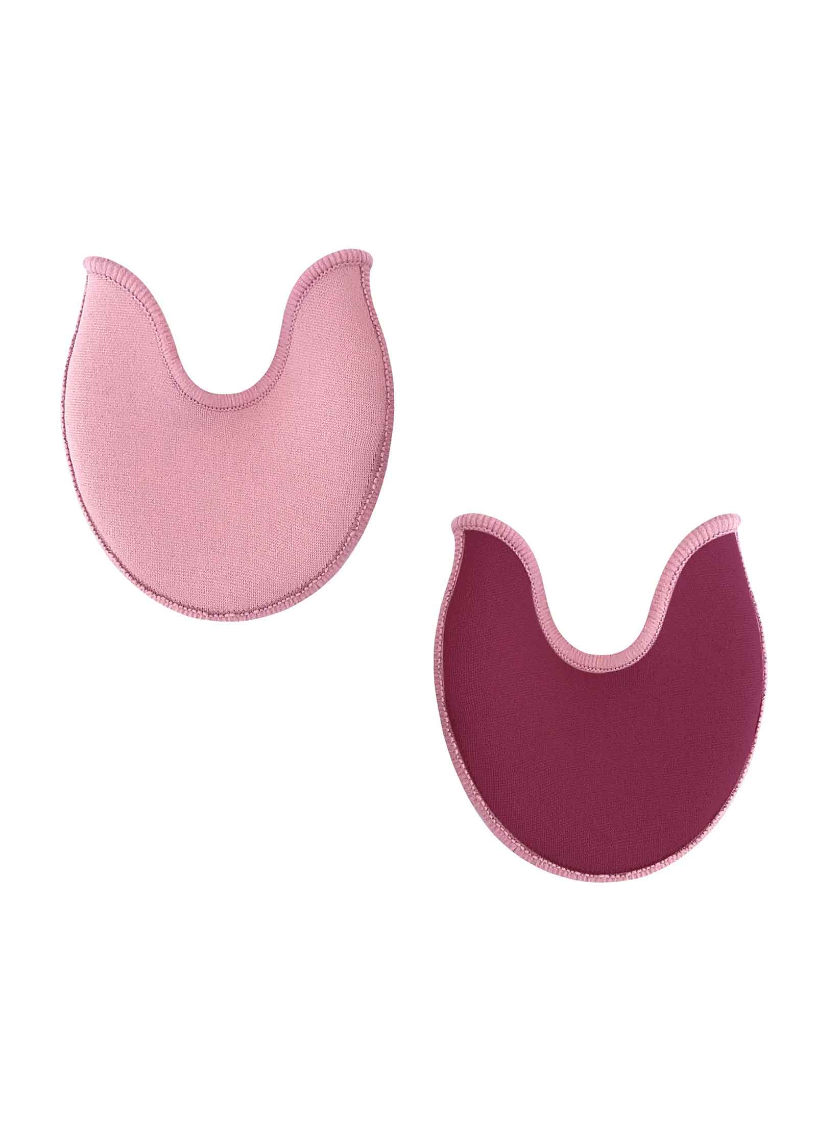Reversible toe pad in a custom two-tone color combination. a thin layer of gel covered fabric designed for comfort and protection. These crescent shaped toe pads are made of a thin layer of medical grade mineral oil gel. Toe pads may be hand washed with a mild soap and should be allowed to air dry.